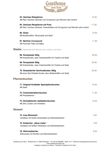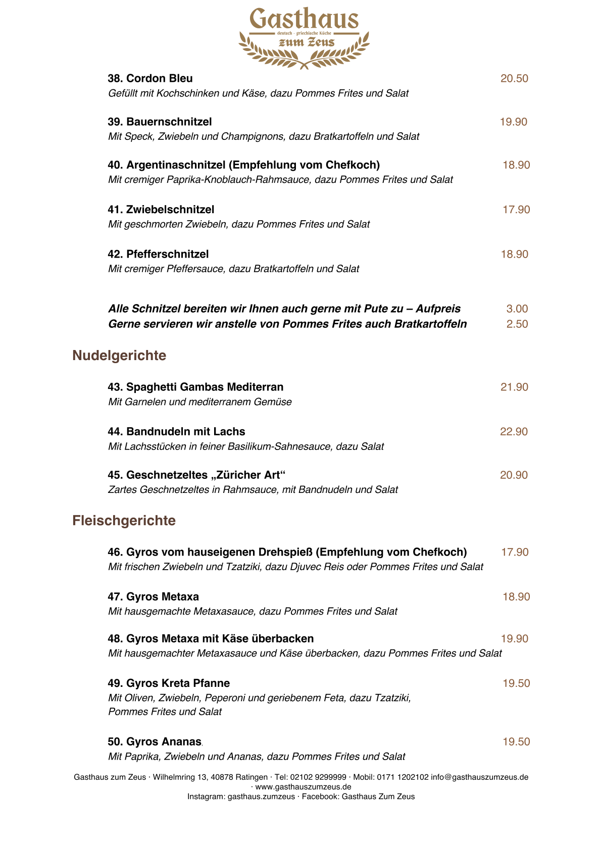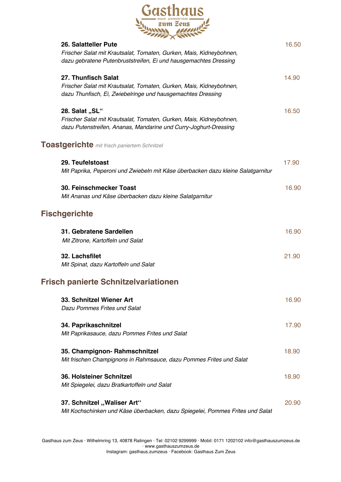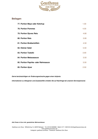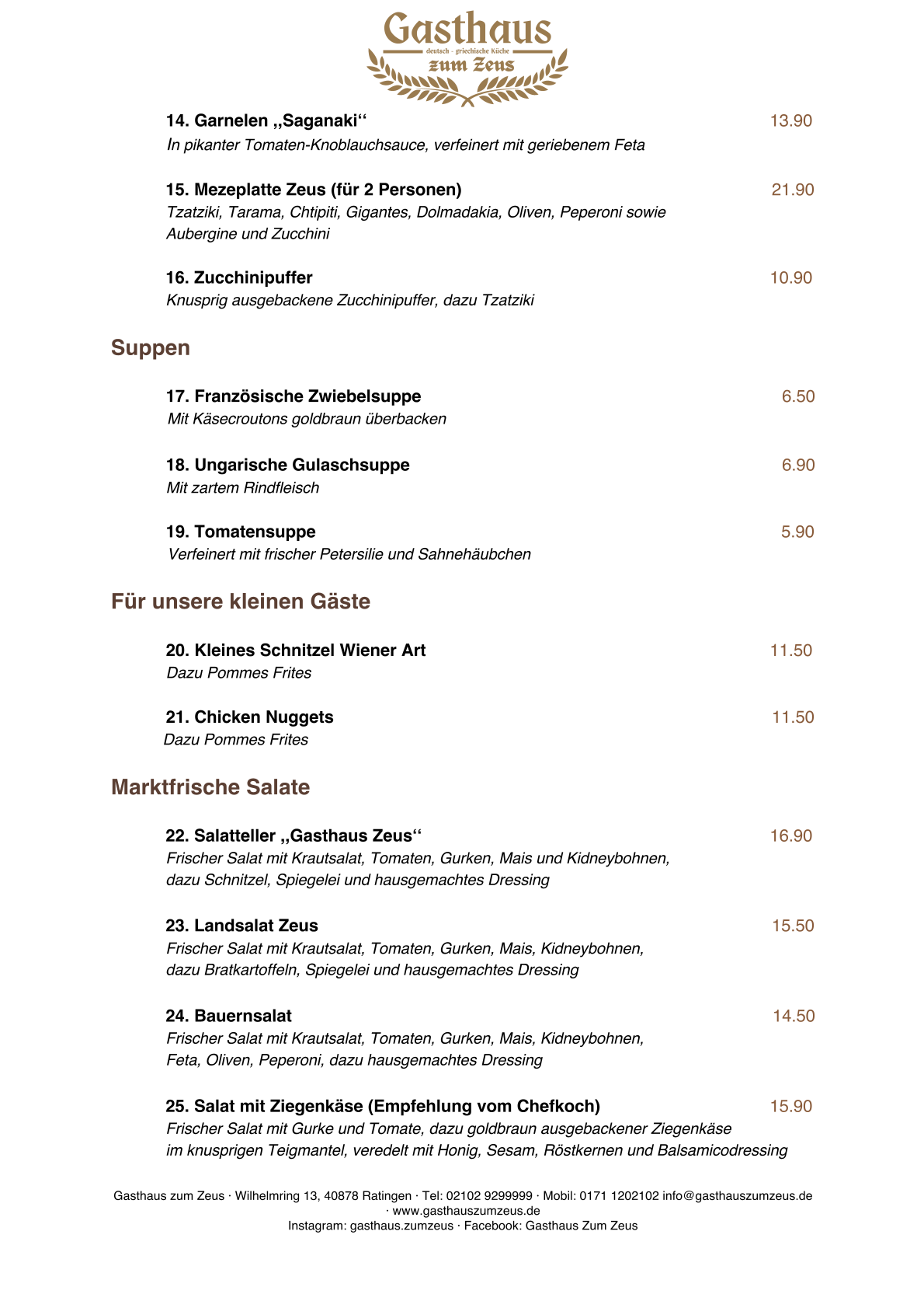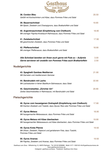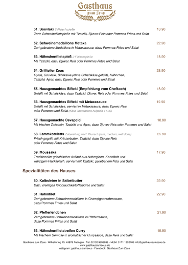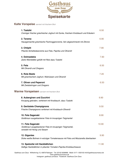 Im Gasthaus zum Zeus servieren wir Ihnen das Beste aus der griechischen und deutschen Küche. Frisch zubereitet, mit Liebe gekocht – für jeden Geschmack ist etwas dabei.